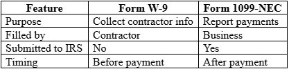 Understanding the W-9 vs 1099 NEC differences explained is essential.